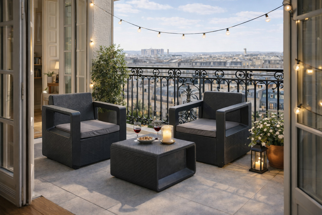 Ideális erkélyekre, kisebb teraszokra vagy hangulatos kerti pihenősarkok kialakításához, ahol fontos a kényelmes és elegáns kültéri berendezés.