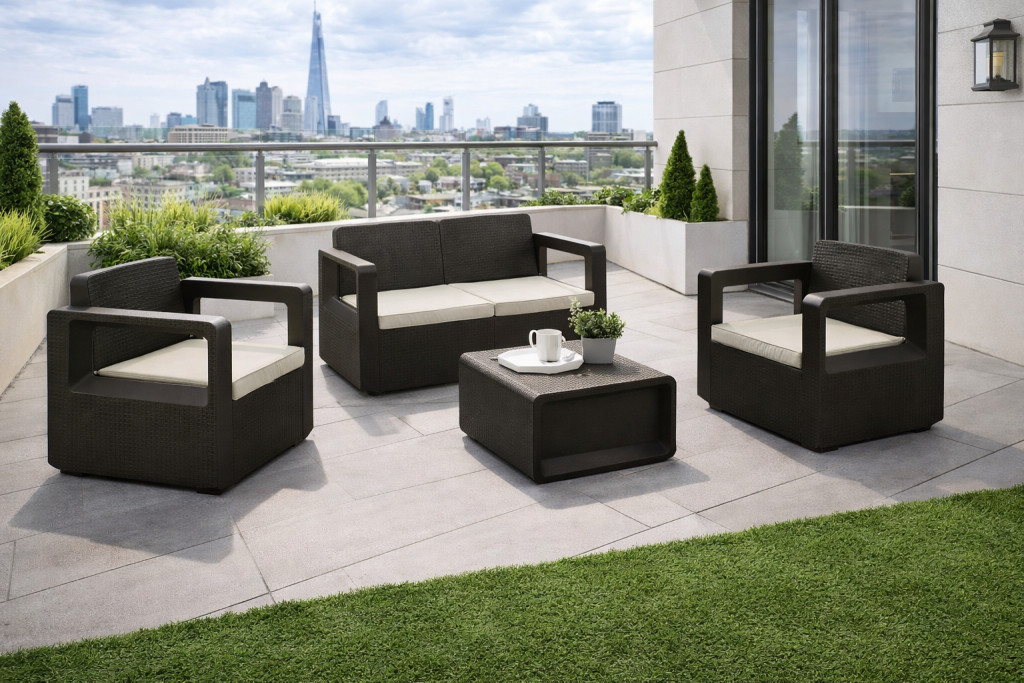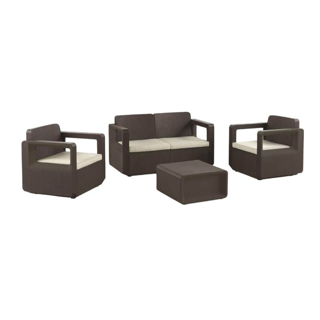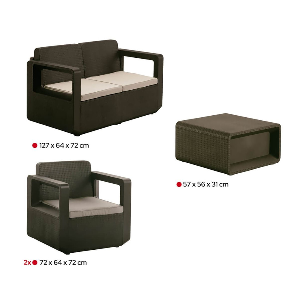 A Chill 4 személyes kerti bútor garnitúra modern, letisztult megjelenésével és kényelmes kialakításával tökéletes választás kertbe, teraszra vagy pergola alá. A barna szín elegáns és időtálló, harmonikusan illeszkedik természetes és modern környezetbe egyaránt. Vastag, kényelmes párnái és stabil szerkezete ideális helyszínt teremtenek baráti beszélgetésekhez, családi pihenéshez vagy nyári estékhez.