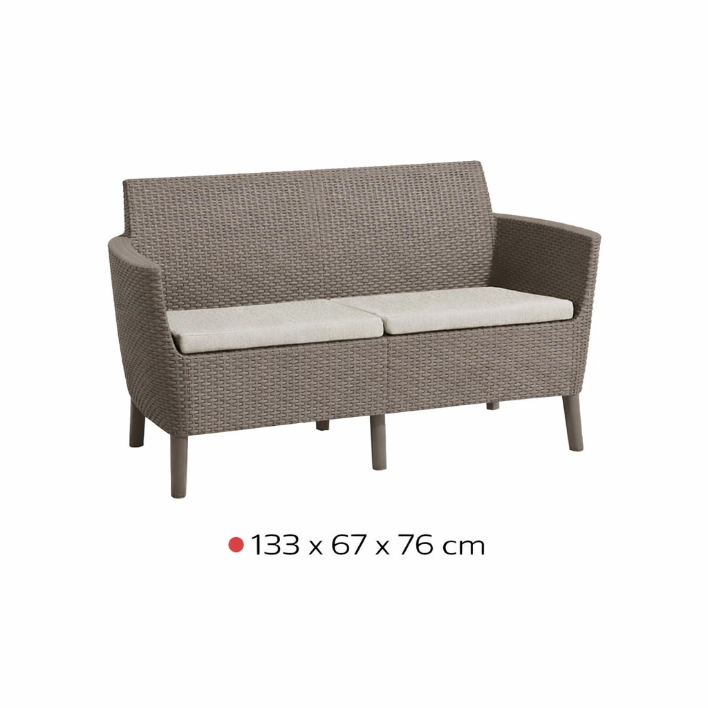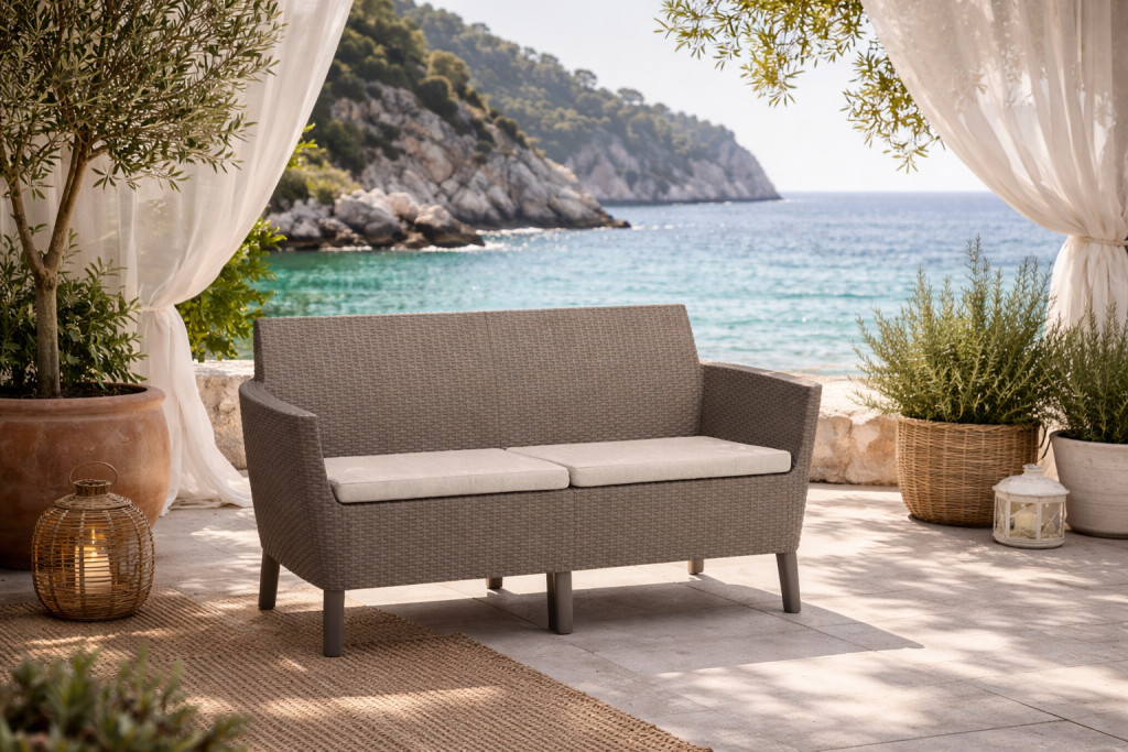 A Clásica 2 személyes kerti kanapé krém színben igazi mediterrán, strandközeli hangulatot varázsol kertjébe vagy teraszára. Meleg árnyalata és természetes hatású fonott kialakítása napfényes, tengerparti atmoszférát idéz, ahol a pihenés és a könnyed elegancia találkozik. Ideális választás kültéri terekbe, ahol fontos a stílus, a kényelem és a harmonikus összkép. Tökéletes helyszínt teremt egy hűsítő italhoz, esti beszélgetésekhez vagy nyugodt kikapcsolódáshoz a szabadban.