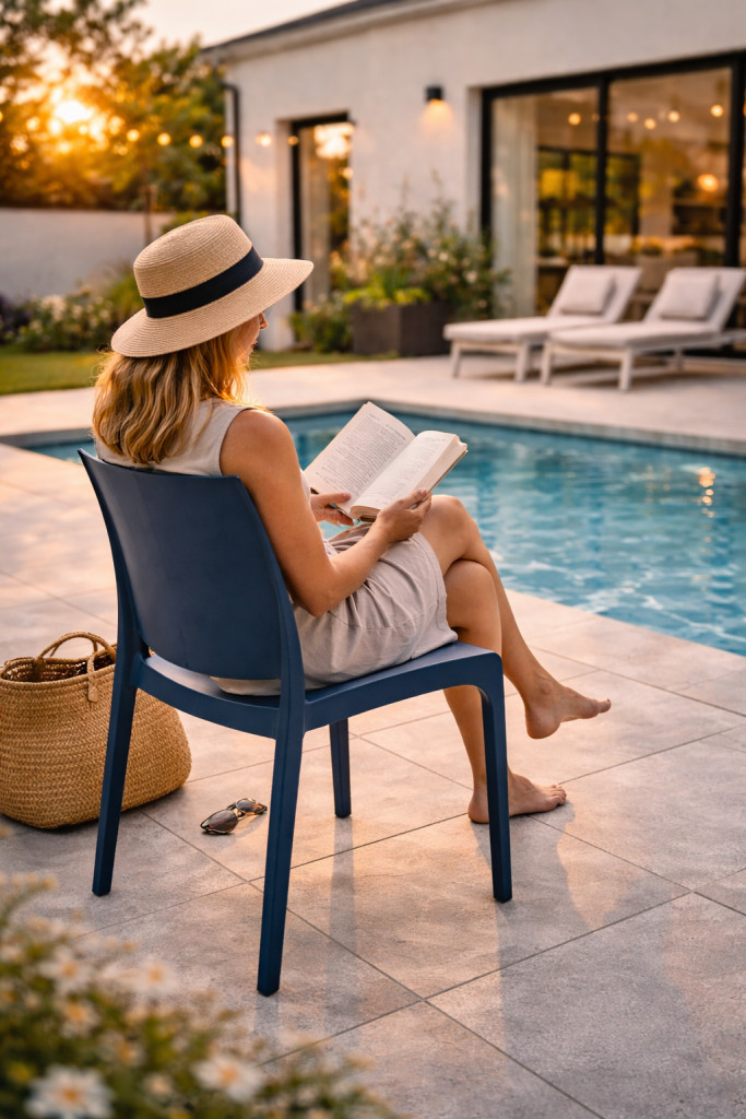 Ideális medence melletti teraszokra, kerti pihenősarkokba vagy modern kerti étkezőrészek kialakításához, ahol a friss színek és a letisztult kültéri bútorok dominálnak.