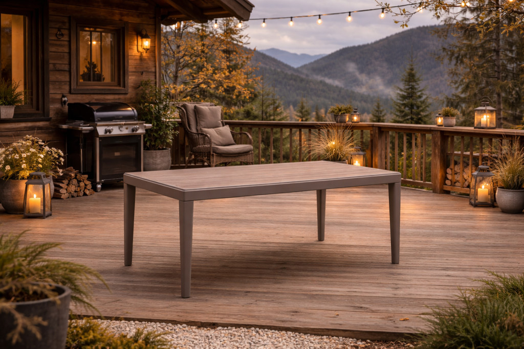 A természetes megjelenés sosem megy ki a divatból. Ha most olyan asztalt választ, amely fa hatású, mégis időjárásálló kivitelű, hosszú évekre biztosít esztétikus és gondozásmentes megoldást kültéri tereiben.