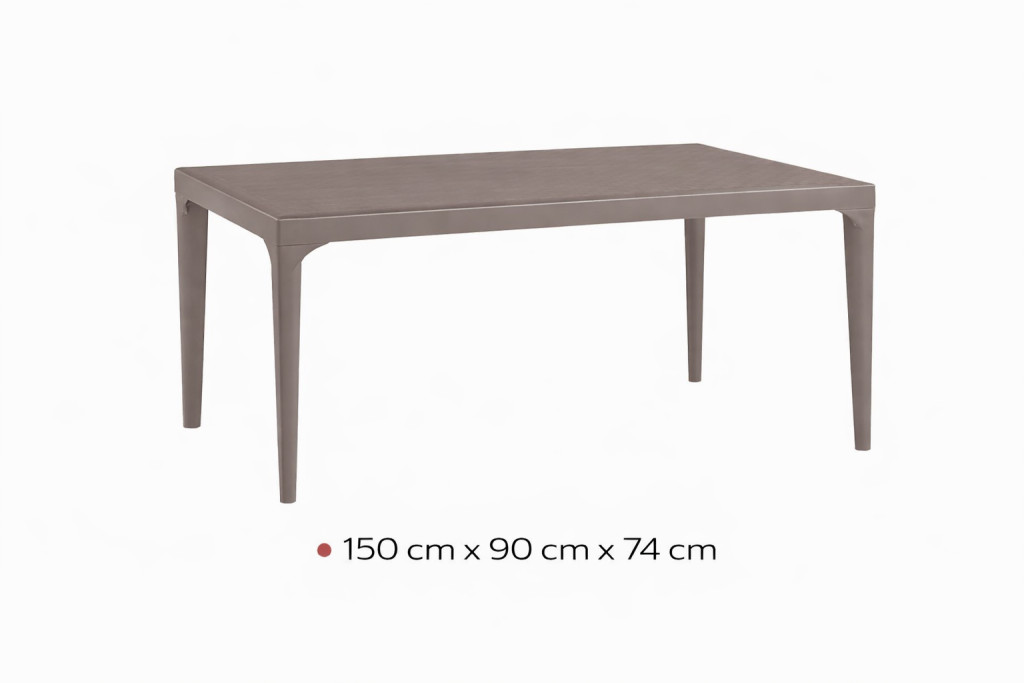 A Dyna famintás kerti asztal matt bézs-szürke természetes fa hatásával melegséget és harmóniát visz bármely kültéri környezetbe. A finoman kidolgozott famintázat elegáns, mégis barátságos megjelenést biztosít, miközben a modern matt bézs-szürke árnyalat könnyedén illeszkedik klasszikus és kortárs terekhez egyaránt. Ideális választás kertbe, teraszra vagy akár fedett kültéri étkezőkbe, ahol fontos a természetközeli hangulat és az időtálló stílus.