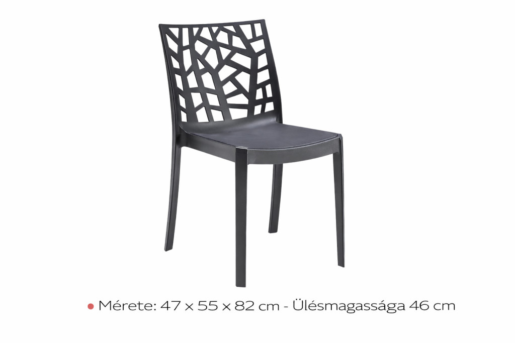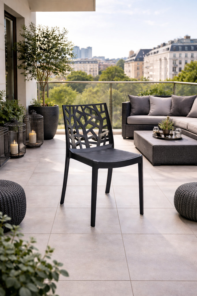 A Naturale kerti szék fekete kényelmes, stílusos és elegáns megjelenésével azonnal kifinomult környezetté varázsolja otthonát. Modern, légies háttámlája különleges karaktert ad a térnek, miközben ergonomikus kialakítása hosszabb beszélgetések vagy vacsorák során is kényelmes ülést biztosít. Fekete színe időtálló és könnyen kombinálható, így harmonikusan illeszkedik modern teraszokra, kertekbe vagy akár belvárosi erkélyekre is.