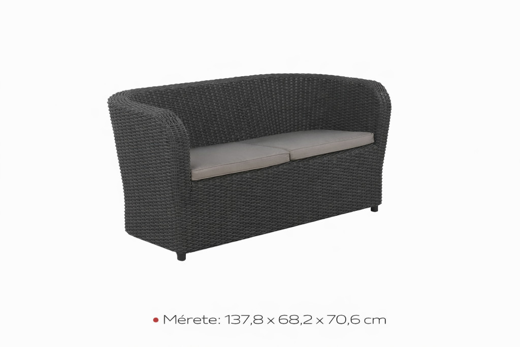 A Rattan 2 személyes kerti kanapé szürke elegáns megjelenésével és természetes hatású fonott kialakításával tökéletes választás egy hangulatos kerti pihenősarok vagy fedett terasz berendezéséhez. A modern rattan hatású dizájn és a visszafogott szürke szín harmonikus, stílusos megjelenést ad a kültéri térnek, miközben a kényelmes ülőpárnák kellemes pihenést biztosítanak. Letisztult formája és barátságos kialakítása ideális helyet teremt egy nyugodt beszélgetéshez vagy egy kellemes délutáni kikapcsolódáshoz.