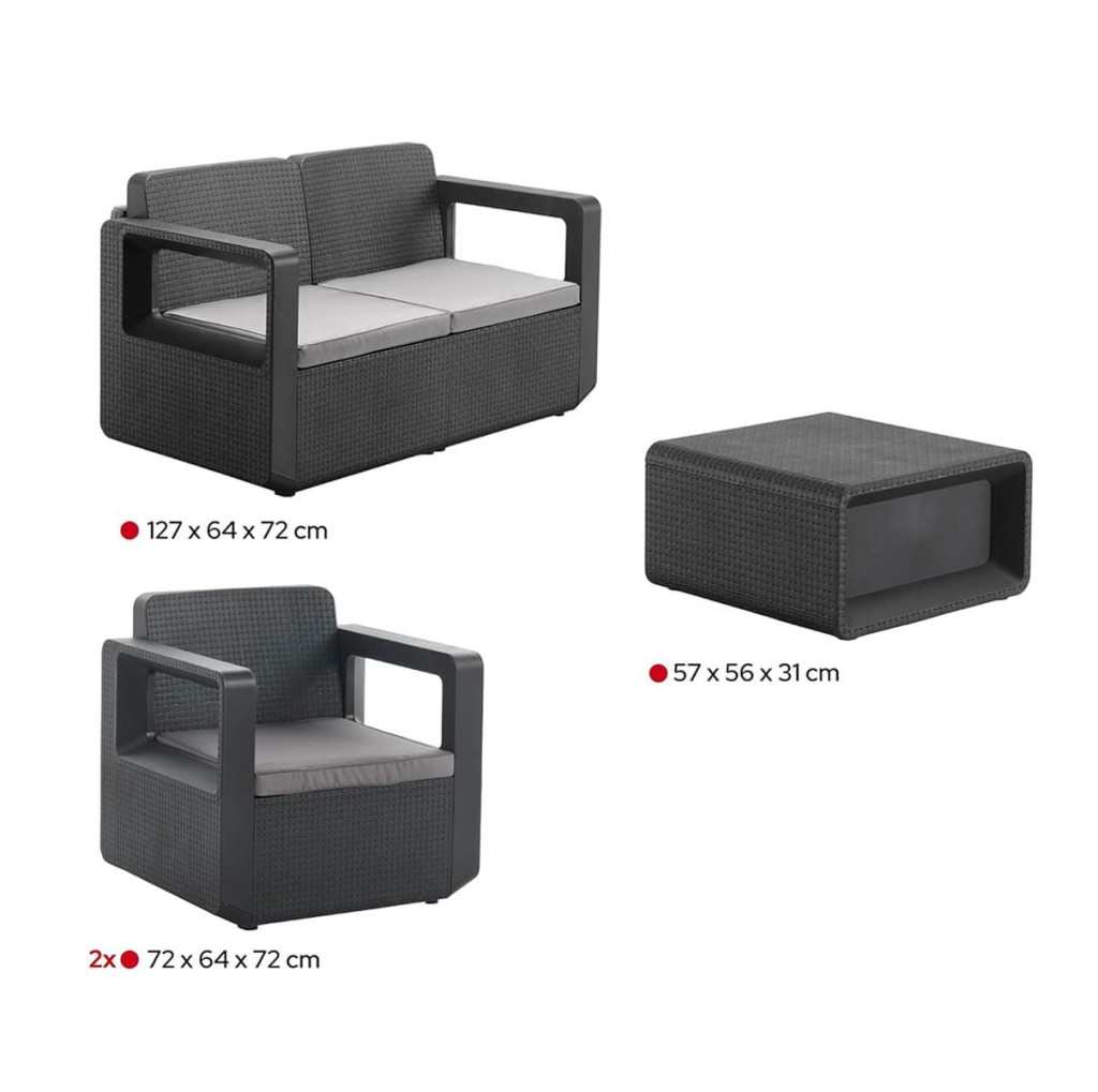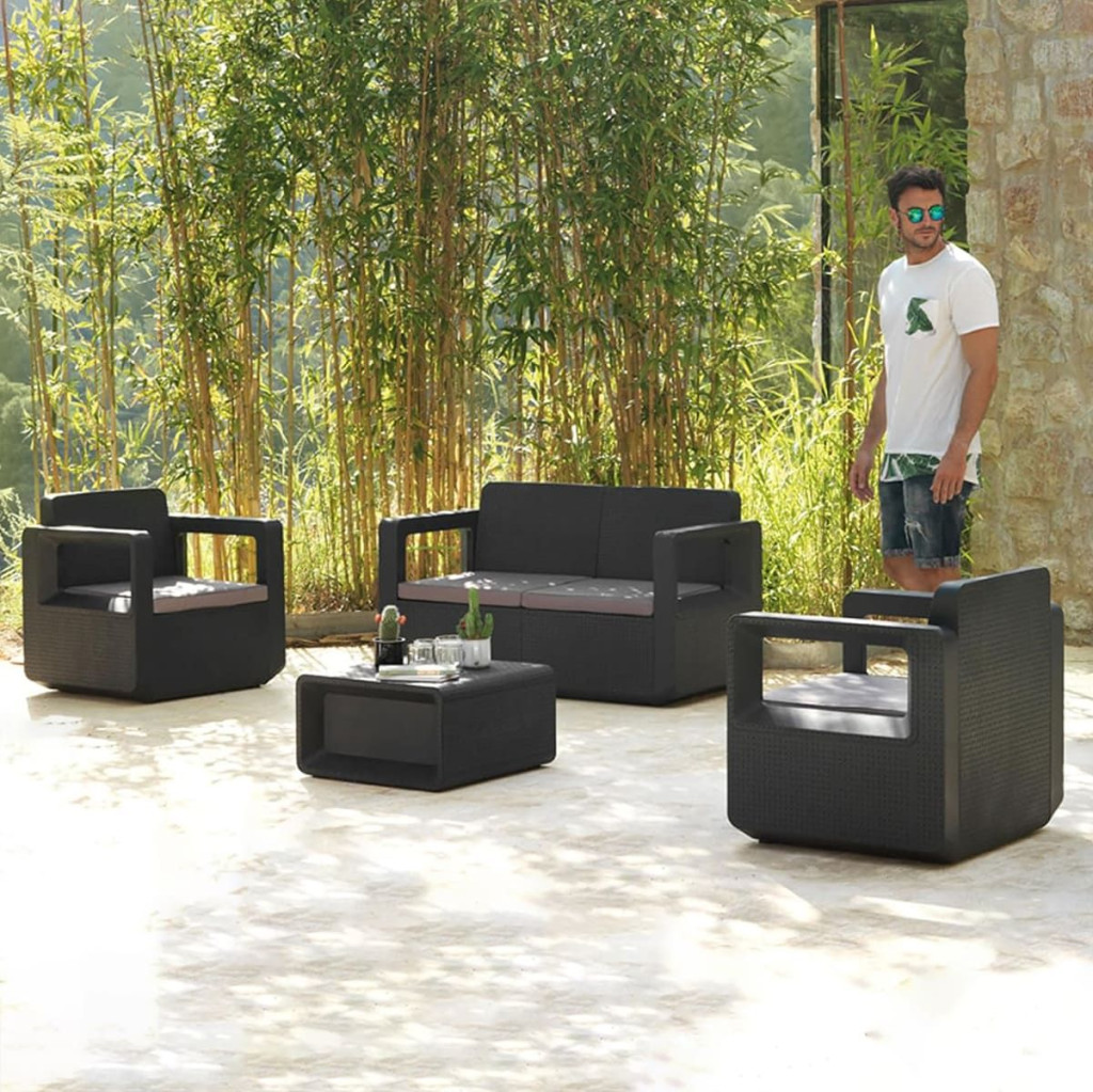 A Solstol 4 személyes kerti bútor garnitúra letisztult, modern megjelenésével és kényelmes kialakításával tökéletes választás teraszra, kertbe vagy pergola alá. A szürke szín elegáns, időtálló és könnyen kombinálható más kültéri elemekkel. Vastag párnái és stabil szerkezete ideális helyszínt biztosít baráti beszélgetésekhez, családi pihenéshez vagy nyugodt esti kikapcsolódáshoz.