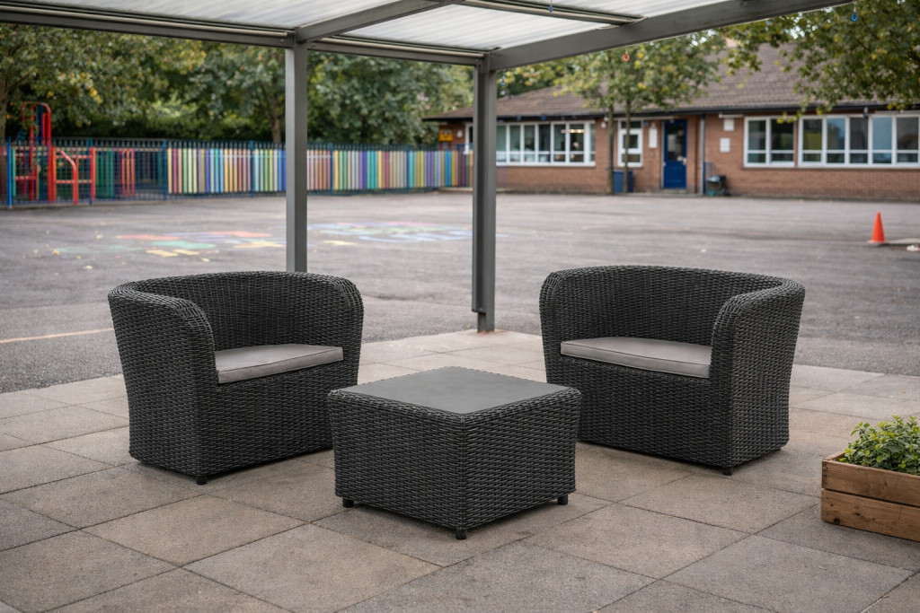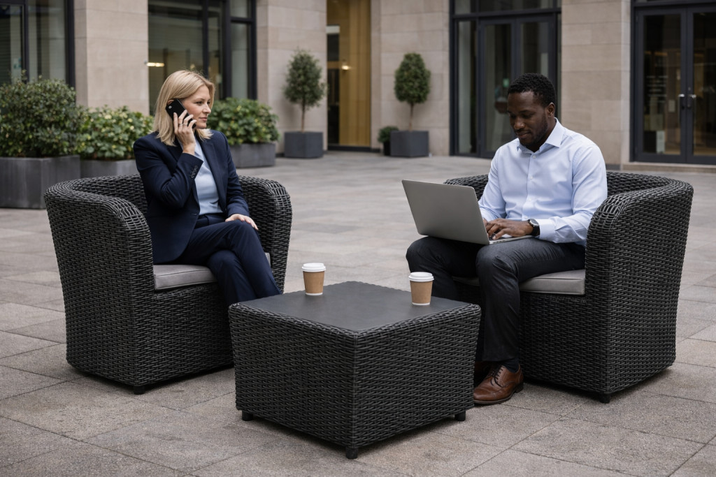 A Tavolo 2 személyes kerti bútor szett masszív, rattan hatású kialakításával és időtálló formavilágával kiváló választás nagyobb közösségi terek, hivatalos épületek udvarai vagy intézmények kültéri pihenőrészei számára. A strapabíró műanyag szerkezet és az ergonomikus kialakítás ideálissá teszi iskolák, irodaházak vagy céges közösségi terek berendezéséhez, ahol fontos a tartósság és a kényelmes használat. A két stabil fotel és a praktikus asztalka rendezett, barátságos környezetet teremt a mindennapi pihenéshez vagy beszélgetésekhez.