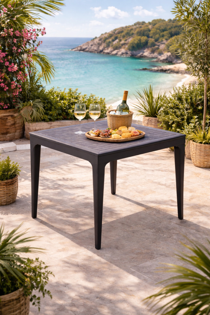 Az Utomhus famintás kerti asztal szürke modern megjelenésével és természetes hatású felületével tökéletes választás egy letisztult, modern terasz vagy kerti étkezőrész kialakításához. A szürke árnyalat elegáns és visszafogott megjelenést ad, míg a finom famintás textúra természetes hatást kölcsönöz a kültéri térnek. Stabil szerkezete és időtálló dizájnja ideális alapot biztosít családi étkezésekhez, baráti beszélgetésekhez vagy egy nyugodt kerti pihenéshez.