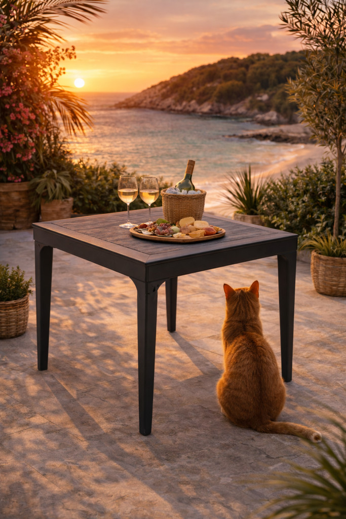 Ideális kerti étkezőrészekhez, modern teraszokra vagy hangulatos kültéri pihenősarkok kialakításához, ahol fontos a természetes és elegáns megjelenés.