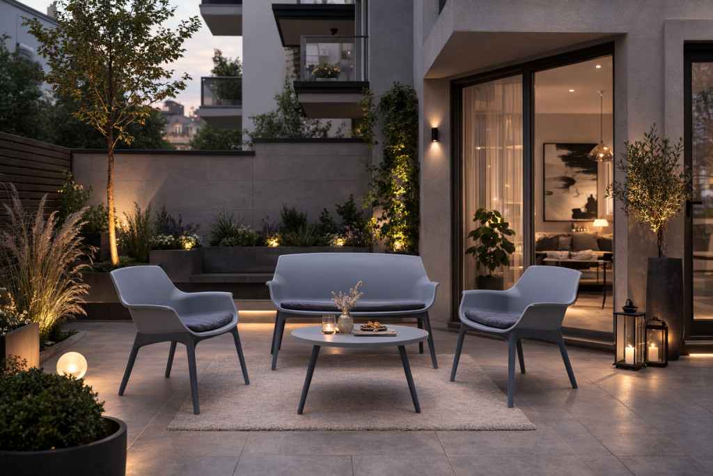 A Veranda 4 személyes kerti bútor garnitúra szürke árnyalatban a letisztult, elegáns kültéri környezet alapdarabja. Modern formavilága és finom színösszhangja harmonikus, rendezett megjelenést teremt teraszon, kertben vagy nagyobb erkélyen. Karcsú vonalai és visszafogott dizájnja kifinomult atmoszférát alakít ki, ahol minden részlet a nyugalmat és az esztétikai egységet szolgálja. Tökéletes választás, ha minimalista, mégis stílusos kültéri életteret szeretne kialakítani.